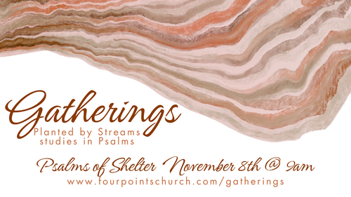 Ladies our next Gathering is around the corner! Our next Gatherings is Saturday morning, November 8th at 9AM. Our focus will be on Psalms of Shelter. Join us and sign up to contribute food for breakfast!