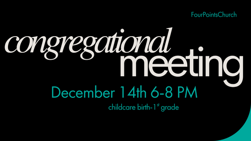 Our last Congregational Meeting for 2025 will be Sunday, December 14th from 6-8PM. Hear from our pastoral consultants, our elders, and our new pastor, as we turn the page from 2025 to 2026. Childcare provided ages birth-1st grade.