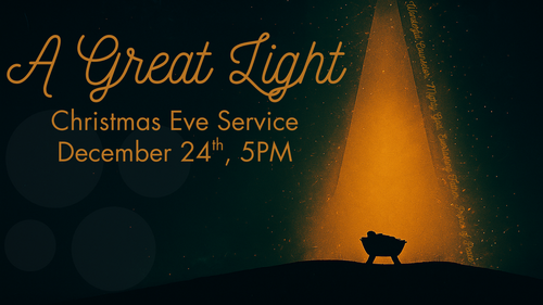 Join us for our Christmas Eve service on December 24th, at 5PM. Worship Jesus with us as we celebrate our Savior! Childcare is not provided.